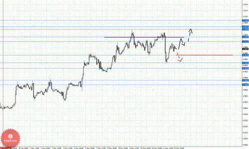По паре Доллар/Канадский доллар ключевыми уровнями являются: 1.0093, 1.0072, 1.0064, 1.0039, 1.0023, 0.9979, 0.9954, 0.9936, 0.9897 и 0.9882. Здесь краткосрочное восходящее движение ожидаем в диапазоне 1.0023 – 1.0039, пробой последнего значения должен сопровождаться выраженным восходящим движением к уровню 1.0064, в коридоре 1.0064 – 1.0072 консолидация цены. Потенциальным значением для верха считаем уровень 1.0093, по достижении которого ожидаем откат книзу. Уровень 0.9979 является ключевой поддержкой для верха, его пробой будет располагать к развитию нисходящей структуры от 9 мая, здесь первая цель 0.9954. В коридоре 0.9954 – 0.9936 консолидация цены. Пробой уровня 0.9936 должен сопровождаться импульсивным движением к уровню 0.9897. Потенциальным значением для низа считаем уровень 0.9882, по достижении которого ожидаем консолидированное движение в коридоре 0.9882 – 0.9897.