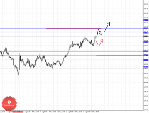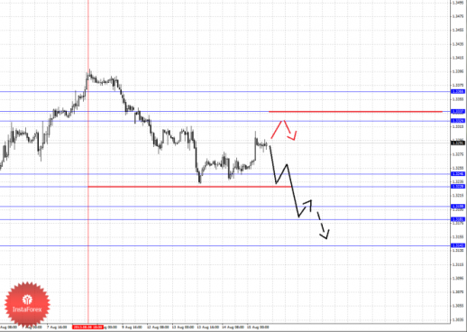 По паре Евро/Доллар важными уровнями являются: 1.3401, 1.3324, 1.3286, 1.3269, 1.3246, 1.3228, 1.3199, 1.3181 и 1.3143. Здесь продолжения развития нисходящей структуры от 8 августа ожидаем после прохода ценой шумового диапазона 1.3246–1.3228, в данном случае цель 1.3199, в коридоре 1.3199–1.3181 консолидация цены. Потенциальным значением для низа считаем уровень 1.3143, по достижении которого ожидаем откат кверху. Диапазон 1.3324–1.3337 является ключевой поддержкой для нисходящей структуры от 8 августа, в нем ожидаем краткосрочное восходящее движение, пробой уровня 1.3337 будет располагать к развитию восходящей структуры в масштабе Н1, в данном случае потенциальная цель – 1.3366.
