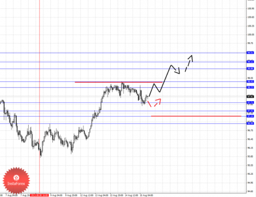 По паре Доллар/Иена ключевыми уровнями являются: 99.42, 99.11, 98.88, 98.43, 98.23, 97.71, 97.42, 97.24 и 96.99. Здесь продолжения развития восходящего цикла от 8 августа ожидаем после прохода ценой шумового диапазона 98.23–98.43, в данном случае цель 98.88, в коридоре 98.88–99.11 консолидация цены. Потенциальным значением для верха считаем уровень 99.42, по достижении которого ожидаем откат книзу. Краткосрочное нисходящее движение возможно после пробоя 97.70, в данном случае цель 97.42, в коридоре 97.42–97.24 консолидация цены, отсюда высока вероятность разворота кверху. Пробой уровня 97.24 приведет к углубленному движению, в данном случае цель – 96.99.