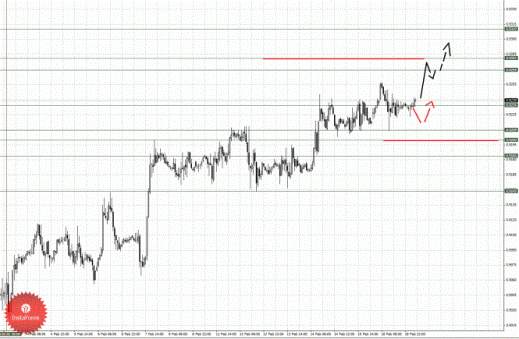 По паре Доллар/Канадский доллар ключевыми уровнями являются: 1.0178, 1.0164, 1.0140, 1.0128, 1.0099, 1.0091, 1.0080 и 1.0055. Здесь в качестве опорной точки для верха мы рассмотрели локальную структуру от 15 февраля. Краткосрочное восходящее движение ожидаем в коридоре 1.0128 – 1.0140, пробой последнего значения должен сопровождаться выраженным восходящим движением, в данном случае цель 1.0164. Потенциальным значением для верха считаем уровень 1.0178, по достижении которого ожидаем консолидацию. Краткосрочное нисходящее движение, возможно в коридоре 1.0099 – 1.0091, пробой последнего значения приведет к углубленному движению, здесь цель 1.0080, от этого уровня высока вероятность разворота кверху, его пробой окажет негативное влияние на развитие восходящей структуры от 15 февраля, в данном случае потенциальная цель – 1.0055.