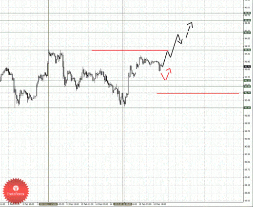 По паре Доллар/Иена ключевыми уровнями являются: 95.85, 95.56, 95.07, 94.41, 93.22, 92.99, 92.74 и 92.16. Здесь от 15 февраля формируется потенциал для восходящего движения. Продолжения движения кверху ожидаем после пробоя 94.41, в данном случае цель 95.07, возле этого уровня консолидация цены. Пробой 95.10 позволит рассчитывать на движение к 95.56. Потенциальным значением для верха считаем уровень 95.85, по достижении которого ожидаем консолидированное движение в коридоре 95.56 – 95.85. Краткосрочное нисходящее движение возможно в коридоре 93.22 – 92.99, пробой последнего значения приведет к углубленному движению, здесь цель 92.74, от этого уровня мы ожидаем ключевой разворот к верху, его пробой будет располагать к развитию нисходящей структуры в масштабе Н1, в данном случае первая цель – 92.16.