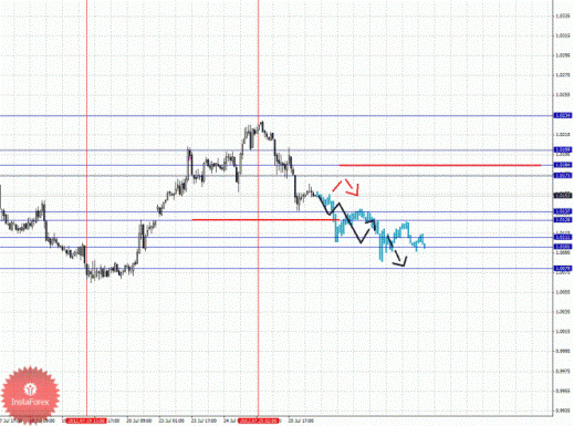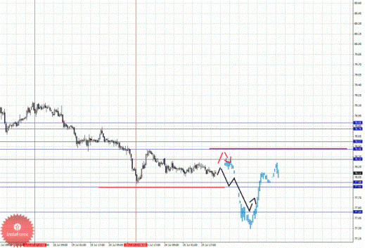 По парам Евро/Доллар и Доллар/Франк следим за формированием потенциала для развития структуры от 24 июля. По паре Фунт/Доллар ключевые цели остались без изменения. По паре Доллар/Иена продолжения движения книзу ожидаем после пробоя 77.91. По паре Евро/Иена от 24 июля формируется потенциал для развития восходящего движения. По паре Фунт/Иена ситуация пока остается без изменения.