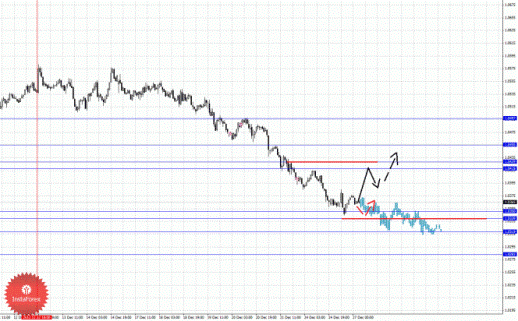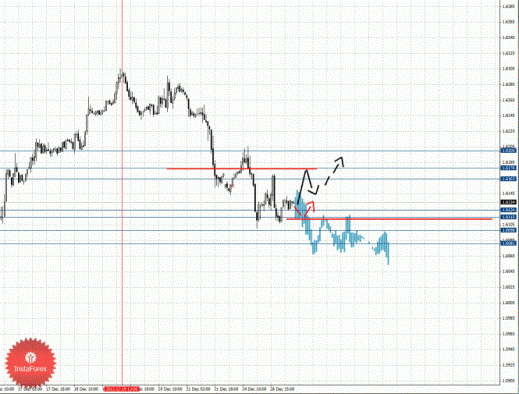 Уважаемые трейдеры, в своем аналитическом обзоре я рассматриваю развитие структуры по определенной валютной паре на предстоящую торговую сессию. После прочтения данного материала вы должны наиболее четко и понятно представлять возможные перспективы развития валют. В данном методе анализа, для наиболее простого изложения своего подхода к рынку, я использую стандартные термины технического анализа, такие как уровни поддержки и сопротивления, однако сам метод основан на свойствах фрактальной функции и несет в себе глубокий смысл понимания развития текущей и будущей ситуации. Все свои расчеты я выполняю от начальных условий развития цикла. Черной стрелкой указано направление движение цены от текущих начальных условий. Красной стрелкой показано альтернативное движение, в случае пробоя ключевых уровней для отмены развития восходящего/нисходящего цикла. Пунктирными стрелками я указываю продолжение движения. Как правило, красной стрелкой я указываю корректировочное движение и краткосрочный выход за уровень. Убедительная просьба: не используйте только одни изображения, изучите текст, чтобы понять последовательность развития того или иного события. Также прошу учесть, что для более ясного понимания изложенного здесь материала, необходимо ознакомиться с фрактальным анализом, так вы сможете понимать то, что здесь написано и как это можно использовать в своей торговой системе.