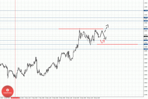 По паре Доллар/Канадский доллар ключевыми уровнями являются: 0.9996, 0.9978, 0.9970, 0.9950, 0.9921, 0.9911 и 0.9899. Здесь продолжения развития восходящего цикла от 13 декабря ожидаем после пробоя 0.9950, в данном случае цель 0.9970, в коридоре 0.9970 – 0.9978 консолидация цены. Пробой уровня 0.9978 позволит рассчитывать на движение к потенциальной цели – 0.9996, по достижении этого уровня ожидаем откат книзу. Краткосрочное нисходящее движение возможно в коридоре 0.9921 – 0.9911, пробой последнего значения приведет к углубленной коррекции, здесь цель 0.9899, до этого уровня мы ожидаем оформления потенциальных начальных условий для развития нисходящего цикла.