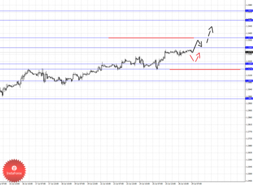 По паре Евро/Доллар и Доллар/Франк следим за структурой в масштабе Н1 от 9 июля. По паре Фунт/Доллар продолжаем следить за восходящим циклом от 9 июля. По паре Доллар/Иена следим за среднесрочной нисходящей структурой от 8 июля, локальной структуры для верха пока не наблюдается. По паре Евро/Иена следим за развитием небольшого нисходящего цикла от 24 июля. По паре Фунт/Иена продолжаем следить за развитием нисходящего цикла от 24 июля.