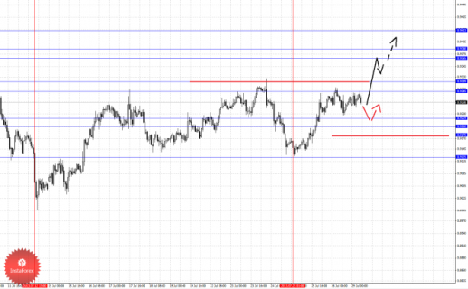 По паре Австралийский доллар/Доллар ключевыми уровнями являются: 0.9433, 0.9388, 0.9365, 0.9309, 0.9285, 0.9219, 0.9200, 0.9179 и 0.9125. Здесь мы продолжаем следить за восходящей локальной структурой от 25 июля. Краткосрочное восходящее движение ожидаем в коридоре 0.9285–0.9309, пробой последнего значения должен сопровождаться выраженным восходящим движением, в данном случае цель 0.9365, в коридоре 0.9365–0.9388 консолидация цены. Потенциальным значением для верха считаем уровень 0.9433, по достижении которого ожидаем откат книзу. Краткосрочное нисходящее движение возможно в коридоре 0.9219–0.9200, пробой последнего значения приведет к углубленной коррекции, здесь цель 0.9180, от этого уровня мы ожидаем ключевой разворот кверху, его пробой будет располагать к развитию нисходящей структуры, в данном случае потенциальная цель – 0.9125.