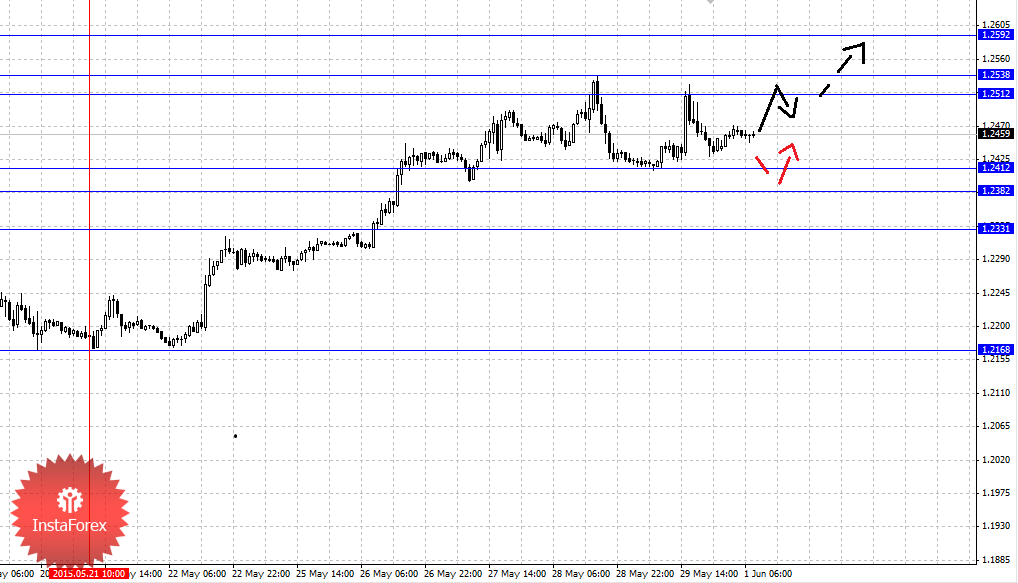 По паре Доллар/Канадский доллар ключевыми уровнями в масштабе Н1 являются: 1.2592, 1.2538, 1.2512, 1.2412, 1.2382 и 1.2331. Здесь мы следим за развитием восходящей структуры от 21 мая, на текущий момент цена находится в коррекции. Краткосрочное восходящее движение возможно в коридоре 1.2512 – 1.2538, пробой последнего значения позволит рассчитывать на движение к потенциальной цели – 1.2592, по достижении которого ожидаем откат книзу. Краткосрочное нисходящее движение возможно в коридоре 1.2412 – 1.2382, пробой последнего значения приведет к углубленной коррекции, здесь цель – 1.2331.