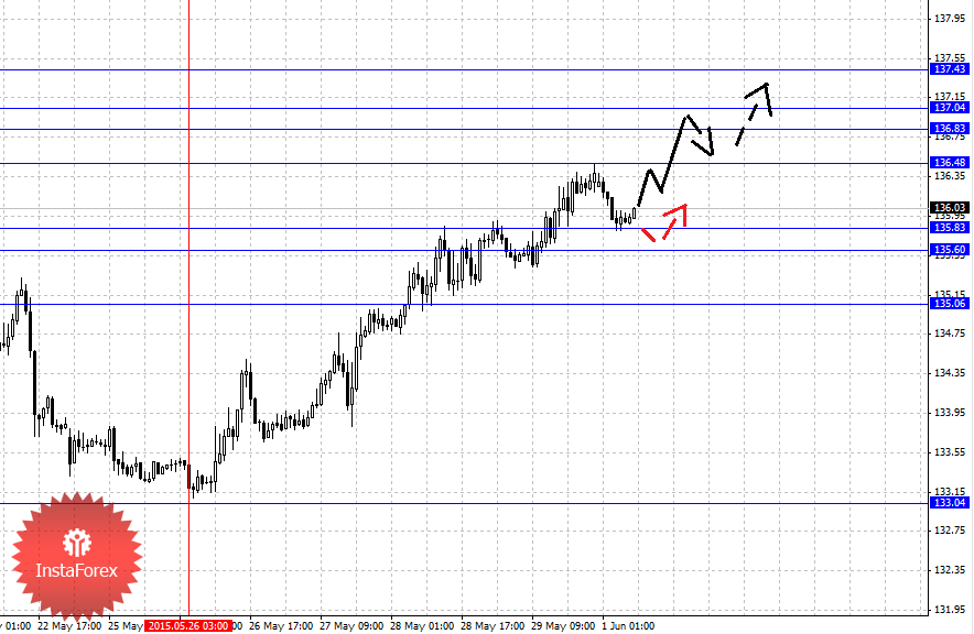 По паре Евро/Иена ключевыми уровнями в масштабе Н1 являются: 137.43, 137.04, 136.83, 136.48, 135.83, 135.60 и 135.06. Здесь мы следим за восходящей структурой от 26 мая. Продолжения движения кверху ожидаем после пробоя 136.48, в данном случае цель – 136.83, в коридоре 136.83 – 137.04 консолидация цены. Потенциальным значением для верха считаем уровень 137.43, по достижении которого ожидаем откат книзу. Краткосрочное нисходящее движение возможно в коридоре 135.83 – 135.60, пробой последнего значения приведет к углубленному движению, здесь цель -135.06.