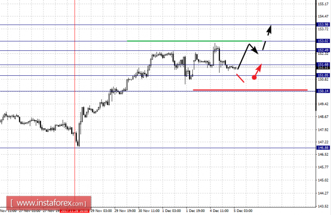 Краткосрочное нисходящее движение возможно в коридоре 151.68 – 151.05, пробой последнего значения приведет к углубленной коррекции, здесь цель – 150.14, этот уровень является ключевой поддержкой для верха.