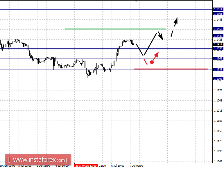 Краткосрочное нисходящее движение возможно в коридоре 1.1399 – 1.1369, пробой последнего значения приведет к углубленной коррекции, здесь цель – 1.1336, этот уровень является ключевой поддержкой для восходящей структуры от 5 июля.