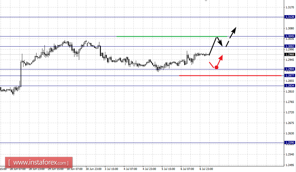 Краткосрочное нисходящее движение возможно в коридоре 1.2904 – 1.2877, пробой последнего значения будет располагать к формированию нисходящего потенциала, здесь цель – 1.2834.