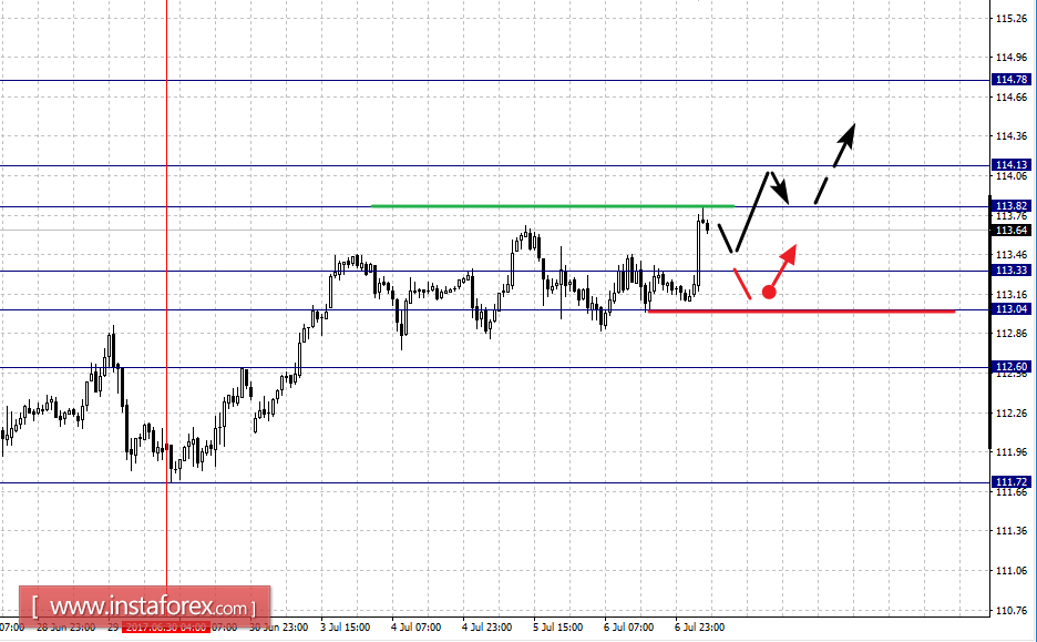 Краткосрочное нисходящее движение возможно в коридоре 113.33 – 113.04, пробой последнего значения приведет к углубленной коррекции, здесь цель – 112.60, этот уровень является ключевой поддержкой для восходящей структуры от 30 июня.