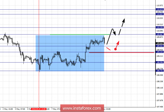 Краткосрочное нисходящее движение возможно в коридоре 109.56 – 109.35, пробой последнего значения приведет к углубленной коррекции, здесь цель – 108.99, этот уровень является ключевой поддержкой для верха от 4 мая.