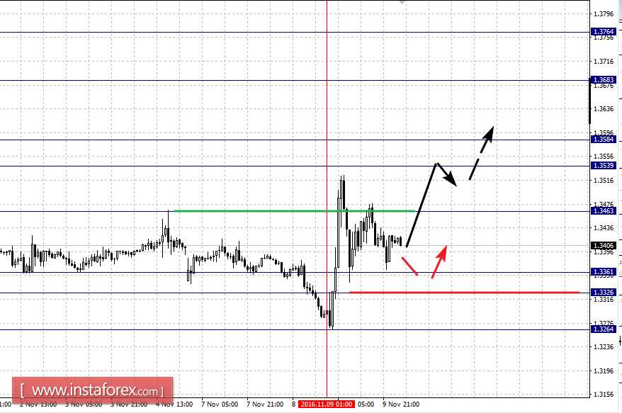 Краткосрочное нисходящее движение возможно в коридоре 1.3361 – 1.3330, пробой уровня 1.3322 будет располагать к развитию нисходящей структуры, в данном случае цель – 1.3264.
