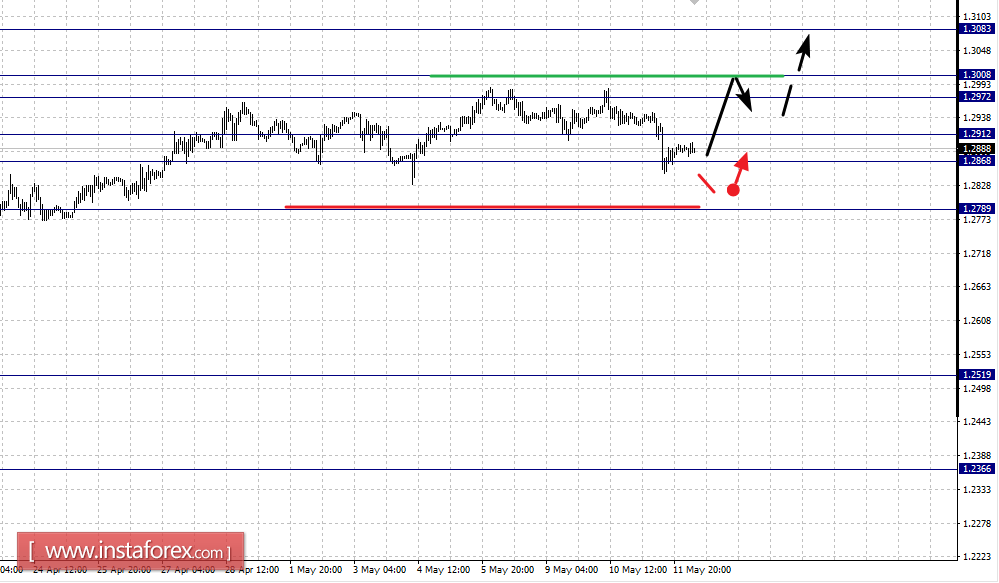 Краткосрочное нисходящее движение, а также консолидация, возможны в коридоре 1.2912 – 1.2868, пробой последнего значения приведет к углубленной коррекции, здесь цель – 1.2789, этот уровень является ключевой поддержкой для верха.