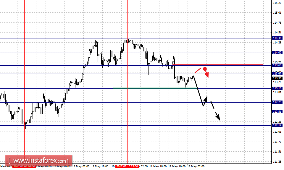 Краткосрочное восходящее движение возможно в коридоре 113.47 – 113.68, пробой последнего значения приведет к углубленному движению, здесь цель – 114.00, этот уровень является ключевой поддержкой для нисходящей структуры, его проход ценой будет располагать к развитию восходящей тенденции, в данном случае цель – 114.36.