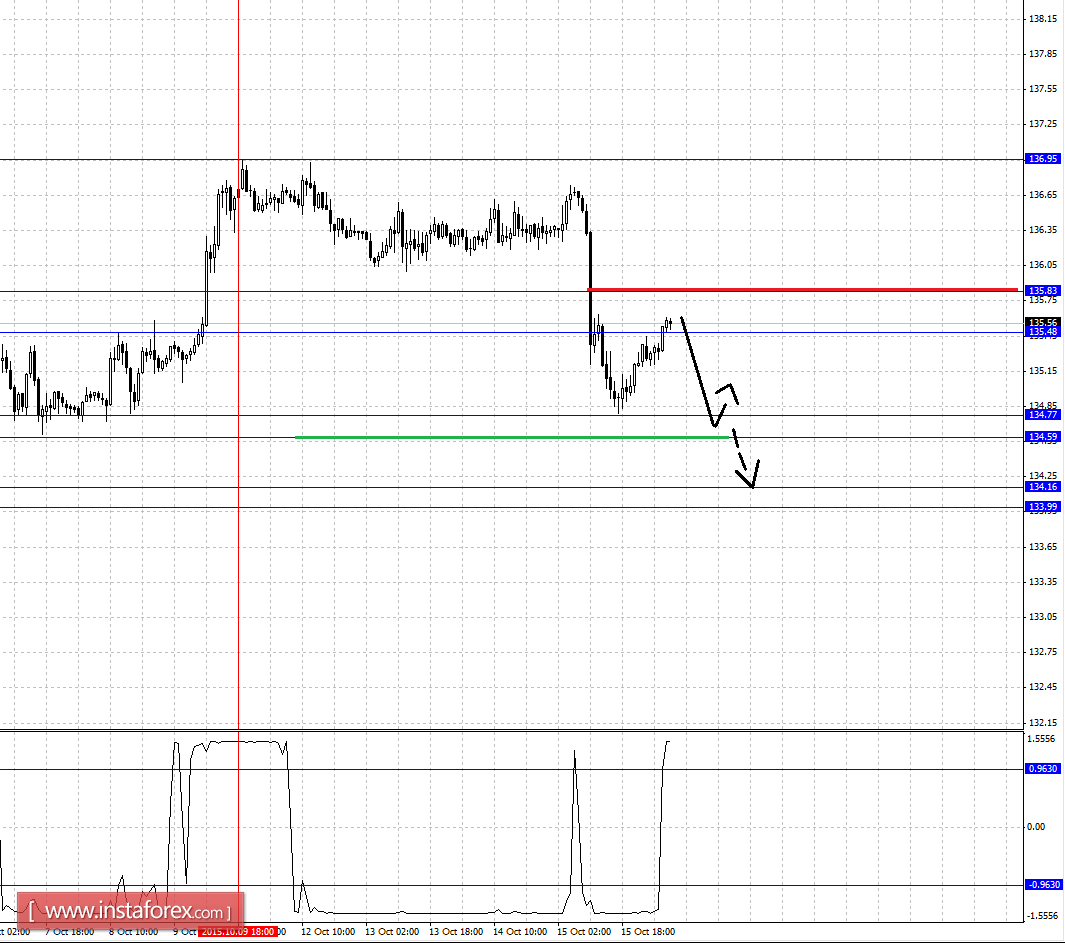 Краткосрочное восходящее движение возможно в коридоре 135.83 - 135.48, пробой последнего значения будет располагать к развитию восходящей структуры, в данном случае первая цель - 136.35.