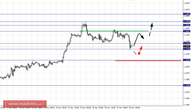 По паре Евро/Доллар цена находится в корректировочной зоне от восходящей структуры, уровень 1.1676 является ключевой поддержкой. По паре Фунт/Доллар продолжения развития восходящей структуры от 3 ноября ожидаем после пробоя 1.3240. По паре Доллар/Франк продолжения движения книзу ожидаем после пробоя 0.9877. По паре Доллар/Иена мы расширили потенциал для нисходящего движения до уровня 111.10. По паре Евро/Иена следим за формированием нисходящей структуры от 14 ноября. По паре Фунт/Иена вернулись к рассмотрению нисходящей структуры от 1 ноября.