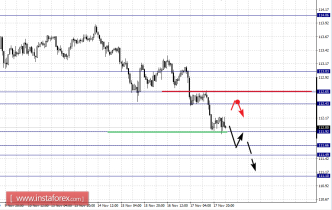 Краткосрочное восходящее движение возможно в коридоре 112.43 – 112.65, пробой последнего значения приведет к углубленной коррекции, здесь цель – 113.03, этот уровень является ключевой поддержкой для нисходящей тенденции, до него мы ожидаем формирования начальных условий для восходящего цикла.
