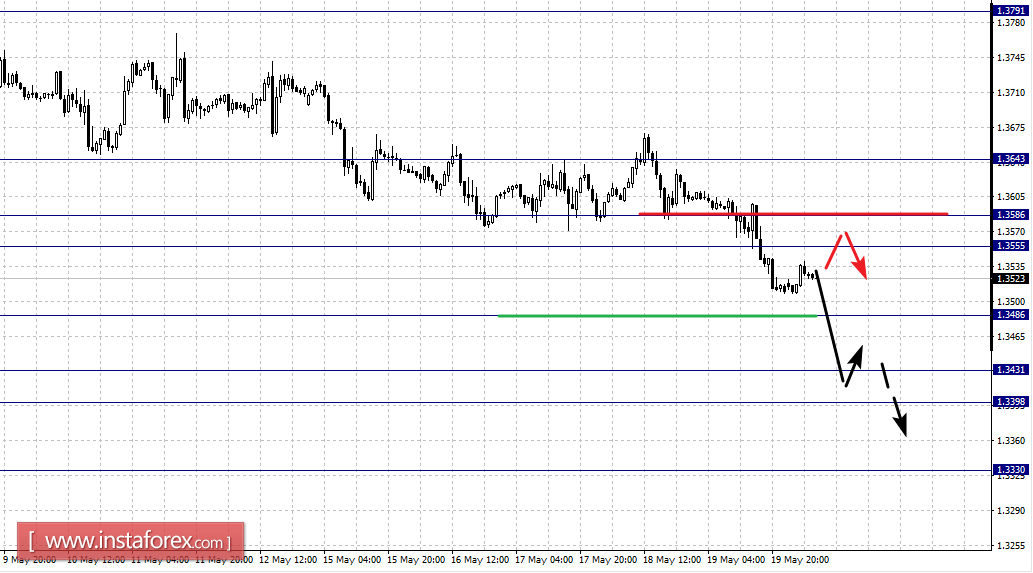 По паре Канадский доллар/Доллар ключевыми уровнями в масштабе Н1 являются: 1.3643, 1.3586, 1.3555, 1.3486, 1.3431, 1.3398 и 1.3330. Здесь мы продолжаем следить за развитием нисходящей структуры от 5 мая. Продолжения движения книзу ожидаем после пробоя 1.3486, в данном случае цель – 1.3431, в коридоре 1.3431 – 1.3398 ожидаем краткосрочное движение книзу, а также консолидацию. Потенциальным значением для нисходящей структуры считаем уровень 1.3330, движение к которому ожидаем после пробоя 1.3396.