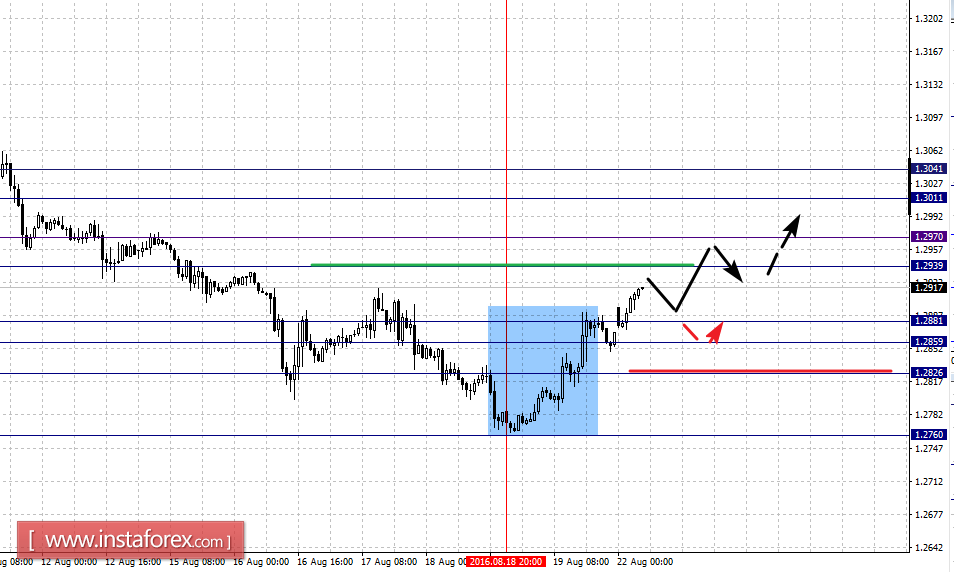 Краткосрочное нисходящее движение возможно в коридоре 1.2881 – 1.2869, пробой последнего значения приведет к углубленной коррекции, здесь цель – 1.2826, этот уровень является ключевой поддержкой для верха.