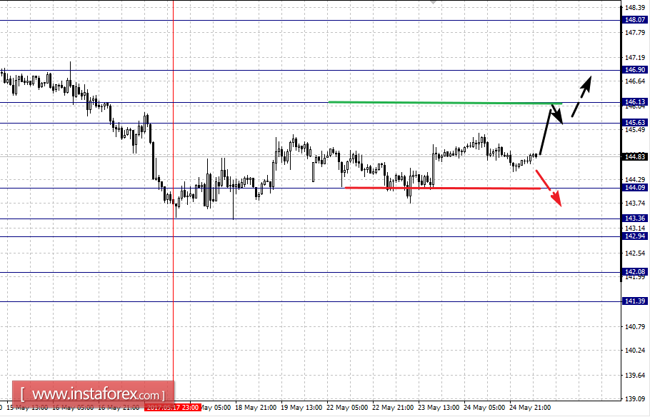Краткосрочное восходящее движение возможно в коридоре 145.63 – 146.13, пробой последнего значения приведет к развитию восходящей тенденции, здесь цель – 146.90.