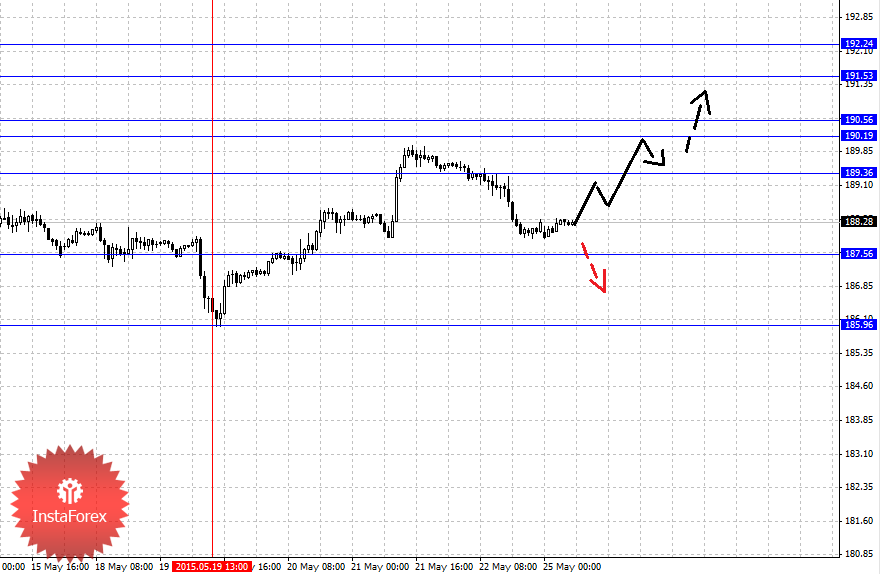 По паре Фунт/Иена ключевыми уровнями в масштабе Н1 являются: 192.24, 191.53, 190.56, 190.19, 189.36, 187.56 и 185.96. Здесь мы продолжаем следить за развитием локальной восходящей структуры от 19 мая. Продолжения движения кверху ожидаем после пробоя 189.36, в данном случае первая цель – 190.19, проход ценой шумового диапазона 190.19 – 190.56, должен сопровождаться выраженным движением, здесь цель – 191.53. Потенциальным значением для верха считаем уровень 192.24, по достижении которого ожидаем консолидацию. Уровень 187.56 является ключевой поддержкой для восходящей структуры, его проход ценой будет располагать к развитию нисходящего движения, здесь потенциальная цель – 187.56.