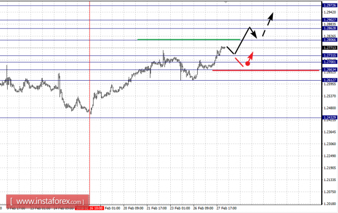 Краткосрочное нисходящее движение возможно в коридоре 1.2731 – 1.2700, пробой последнего значения приведет к углубленной коррекции, здесь цель – 1.2663, этот уровень является ключевой поддержкой для верха, его пробой приведет к формированию нисходящей структуры, в данном случае цель – 1.2612.