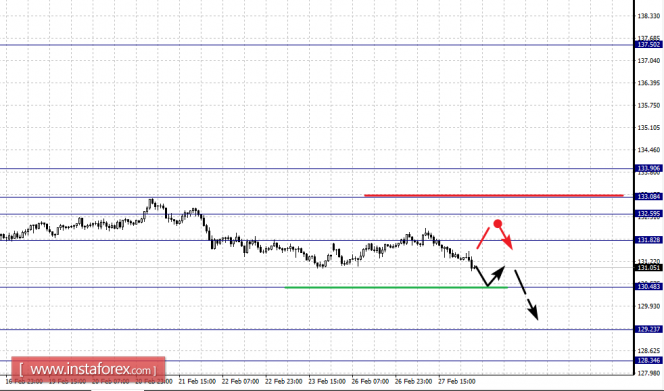 Развитие корректировочного движения возможно после пробоя 131.86, в данном случае цель – 132.59, в коридоре 132.59 – 133.08 консолидация, пробой ценой уровня 133.10 будет располагать к развитию восходящей структуры, здесь цель – 133.90.