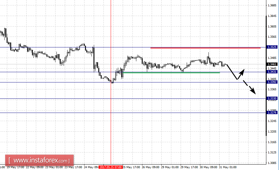 По паре Канадский доллар/Доллар ключевыми уровнями в масштабе Н1 являются: 1.3525, 1.3431, 1.3392, 1.3330 и 1.3276. Здесь мы продолжаем следить за развитием нисходящей структуры от 5 мая, на текущий момент цена находится в коррекции и формирует потенциал для верха от 25 мая. Продолжения движения книзу ожидаем после пробоя 1.3431, здесь цель - 1.3392, пробой которой позволит рассчитывать на движение к уровню 1.3330, возле этого уровня консолидация. Потенциальным значением для нисходящей структуры считаем уровень 1.3276, по достижении которого ожидаем откат в коррекцию.