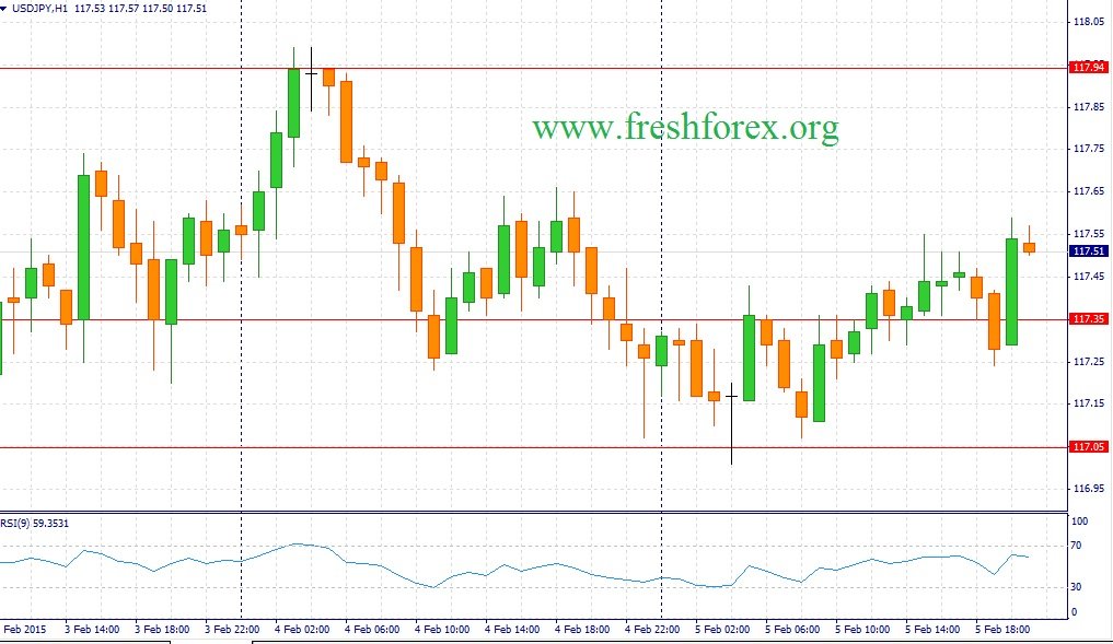 Японская валюта вновь будет пользоваться спросом у трейдеров. Опережающие индикаторы американского рынка труда указывают на выход данных хуже консенсус-прогноза, что усилит коррекцию доллара вдоль всего рынка. При этом стоит отметить, что слабые данные не вызовут сильных распродаж на американском фондовом рынке. Негативные релизы по занятости еще больше убедят инвесторов в том, что ФРС не будет спешить с началом цикла ужесточения монетарной политики. На этом фоне, во второй половине американской торговой сессии можно ожидать спроса на корпоративные бумаги на бирже в Нью-Йорке, что также окажет поддержку быкам в паре доллар/йена. На этом фоне в первой половине дня следует открывать позиции Sell на росте котировок в область 117.75/118.10 и фиксировать прибыль на уровне 117.25. Необходимо выделить следующие уровни: уровни поддержки: уровни поддержки: 117.35 – 117.05 и уровни сопротивления: 117.94 – 118.58.