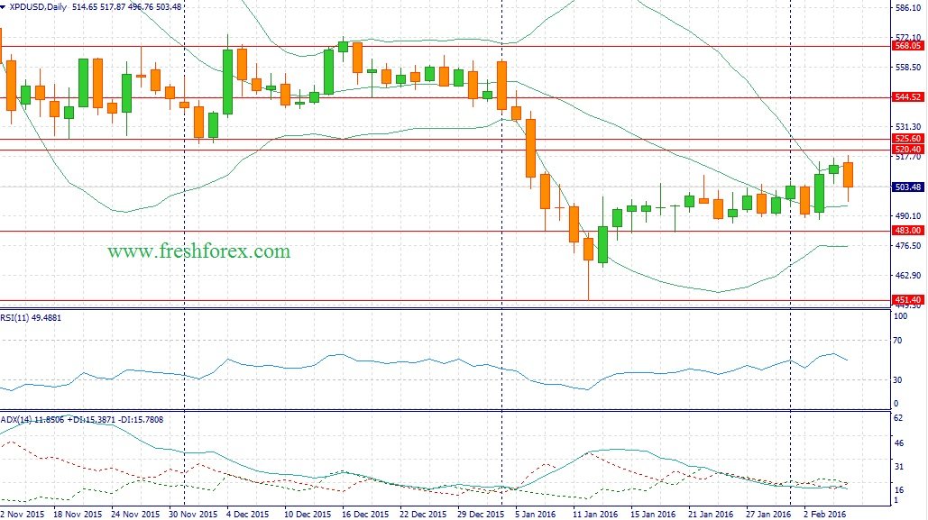 Показатель среднего заработка в первый месяц года увеличился на 0.47%, что будет положительно сказываться на расходах домохозяйств. Таким образом, в первом квартале можно ожидать высоких темпов продаж автомобилей. Во-вторых, на валютном рынке Forex наблюдается коррекция по доллару, что в свою очередь позитивно сказывается на котировках биржевых товаров, поскольку их стоимость деноминирована в американской валюте. На этом фоне следует открывать позиции Buy по XPT/USD на снижение котировок в область 901/890 и фиксировать прибыль отметке 912 и открывать позиции Sell по XPD/USD на росте котировок в область 498/490 и фиксировать прибыль отметке 511.