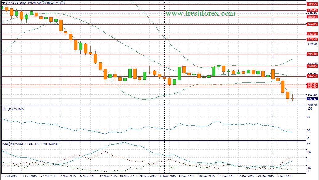 Таким образом, формируется сильный негативный фон по промышленным металлам и в этой связи, наиболее эффективно торговать именно по тренду. На этом фоне следует открывать позиции Sell по XPT/USD на росте котировок в область 890/902 и фиксировать прибыль отметке 861 и открывать позиции Sell по XPD/USD на росте котировок в область 513/538 и фиксировать прибыль отметке 488.