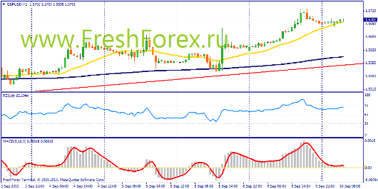 GBP/USD продолжает рост, нацеливаясь на максимумы августа. Однако, выше 1.57 быков может постичь неудача, хотя шансы на продолжение восходящего тренда выросли. Медведи понимают, что прорыв выше 1.5750 позволит быкам нацелится на 1.5850 и, потенциально, 1.60, поэтому возле этого сопротивления можно ожидать их активность.