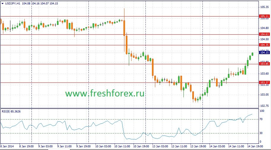 Сегодня в Германии будет опубликован отчет по ВВП за 2013 год. Инвесторы будут пристально отслеживать данные из ведущей экономике Еврозоны, ввиду слабого экономического роста всего валютного блока в целом. Частное потребление в Германии в последние месяцы растет, что может добавить позитива в итоговый релиз. Если все же данные выйдут лучше медианы прогнозов – пара евро/доллар может вырости выше 37 фигуры. В США будут опубликованы данные по индексу цен производителей за декабрь. Сильных отклонений от консенсус - прогноза ожидать не стоит, поэтому реакция на данное событие будет минимальной. В целом, сегодня можно ожидать развития боковой тенденции, в рамках диапазона 1.3630 – 1.3740.