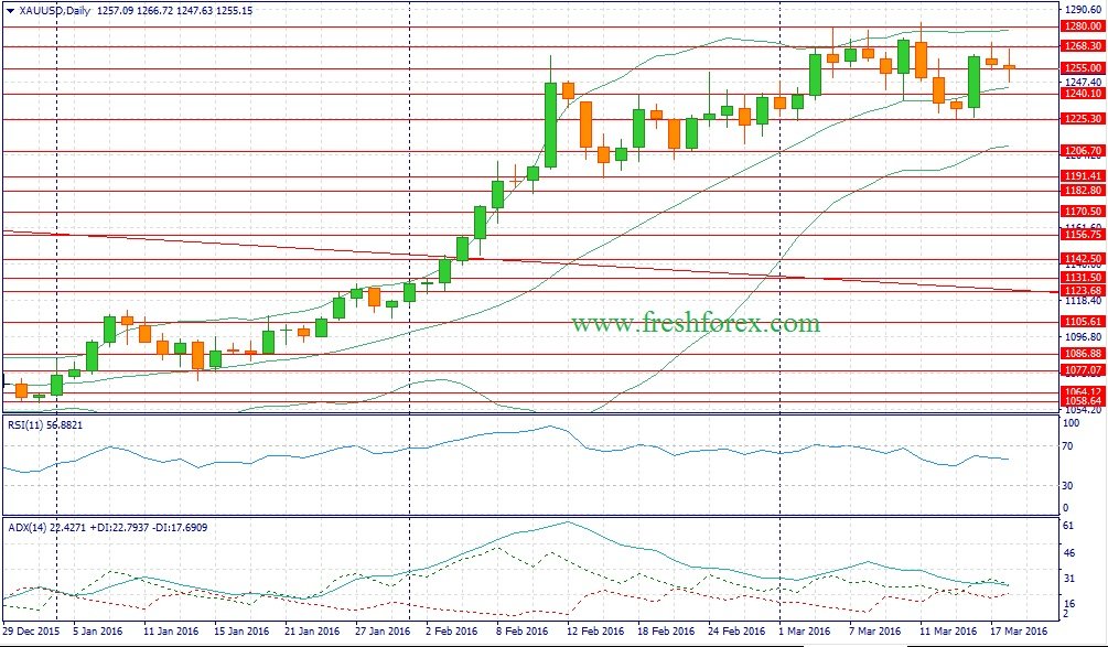 В марте сформировалась позитивная среда для мировых рынков акций: ЕЦБ пошел на дополнительное смягчение кредитно-денежной политики, а ФРС США понизил прогнозы по повышению учетной ставки. Когда два ведущих мировых центробанка сохраняют “политику дешевых денег” – быки мчатся на фондовые площадки и скупают акции. Динамика XAU/USD и индекса S&P500 также подтверждает эту тенденцию: за последнее пять торговых недель золото прибавило в весе 1,36%, а индекс широкого рынка потяжелел на 9,74%. На этом фоне, в течение дня следует открывать позиции Sell на росте котировок в область 1262/1276 и фиксировать прибыль на отметке 1227.