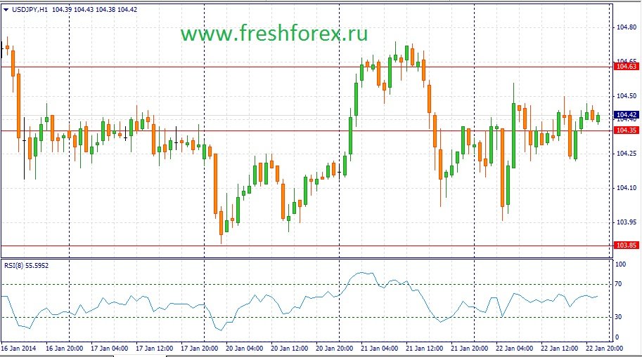 Регулятор заявил, что ожидает весной роста заработных плат, что позитивной скажется на инфляции и к концу 2014 финансового года можно ожидать достижения уровня инфляции 2%. Повышения налога с продаж скажется на темпах экономического роста, однако сейчас серьезного негативного эффекта руководства Банка Японии не видит. Как итог – в азиатскую торговую сессию “быки” и “медведи” вступил в серьезную схватку. Однако, победителя в этой борьбе выявить не смогли и торговый день пара USD/JPY завершила на отметке 104.39.