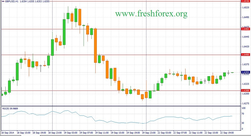 Пара GBP/USD в течение дня умеренно подрастала на фоне снижение кросс-курса EUR/GBP, а так же негативного релиза по продажам жилья на вторичном рынке в Соединенных Штатах. Стоит отметить, что рост котировок носил сдержанный характер и его следует рассматривать как коррекционное движение к сильным распродажам фунта стерлинга в пятницу 19 сентября. По итогам дня, пара фунт/доллар потяжелела на 0.3%, завершив торги на отметке 1.6355.