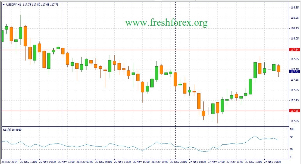 В первой половине четверга трейдеры продолжали избавляться от американского доллара в паре USD/JPY, так как были напуганы комментариями главы Банка Японии о негативном влиянии девальвации йены на расходы домохозяйств. В моменте котировки достигли отметки 117.23, после чего мы увидели укрепление “гринбека” после оглашения саммита ОПЕК. Распродажи сырьевых товаров подстегивают спрос на доллар, что мы и наблюдали во второй половине дня. По итогам дня быки и медведи не смогли выявить победителя и торговый день завершился на отметке 117.73.