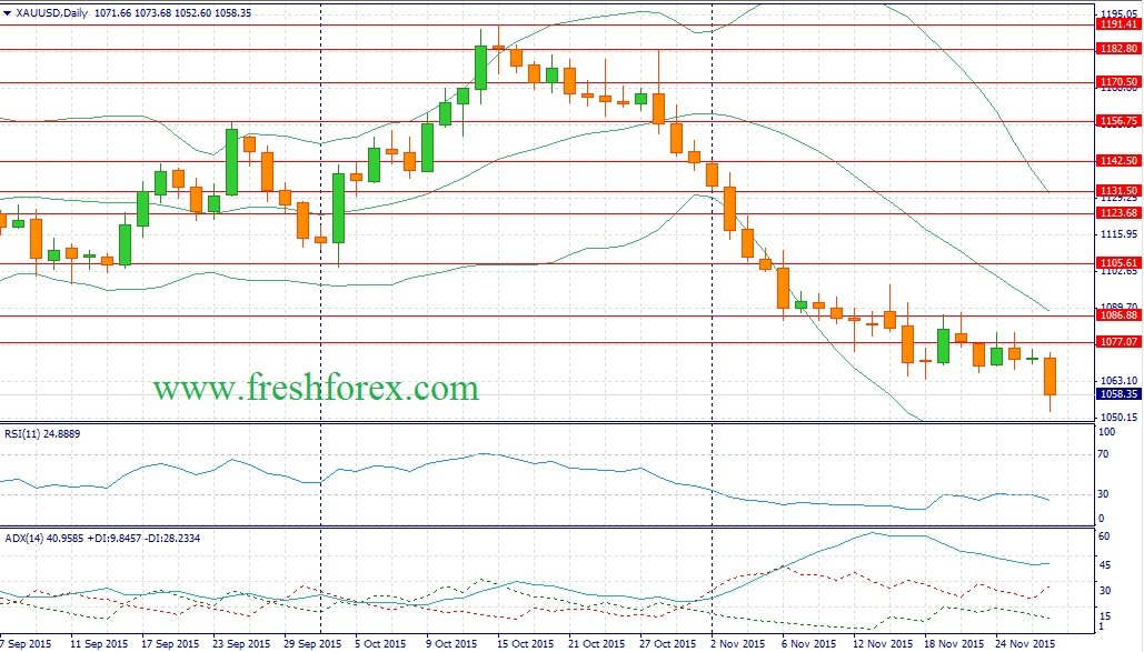 На этом фоне, трудно рассчитывать, что инвесторы превратятся в оптимистов и станут открывать длинные позиции на товарном рынке. Напротив, следует ожидать продолжения нисходящего тренда. Во-вторых, Соединенные Штата в последнее время радуют участников рынка позитивной макроэкономической статистикой, что позволило индексу долларовой корзины (USDX) преодолеть уровень 100.00. Укрепление американской валюты традиционно негативно сказывается на динамике драгоценного металла. На этом фоне следует открывать Sell по XAU/USD на росте котировок в область 1064/1075 и фиксировать прибыль отметке 1041.