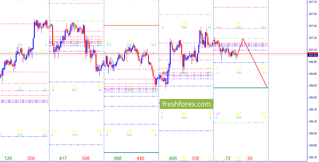 Торговые решения: Sell 107.20 – 107.13 take profit 106.47 – 106.30.