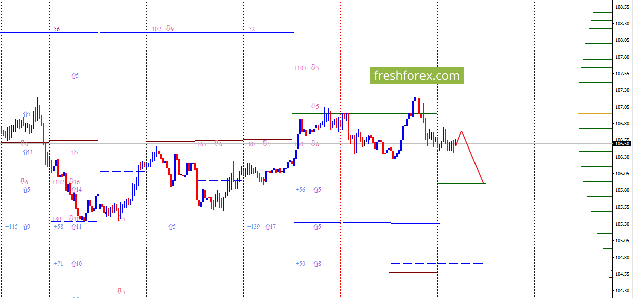 Торговые решения: Sell 106.53 – 106.40 take profit 105.50 – 105.25.