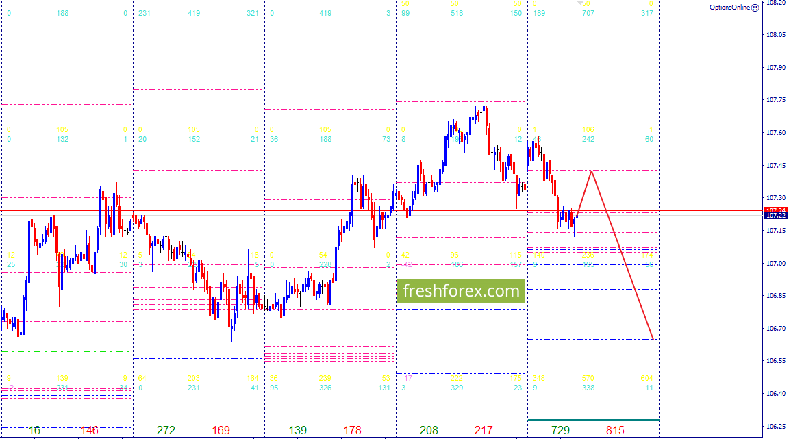 Торговые решения: Sell 107.43 – 107.57 take profit 106.78 – 106.50.