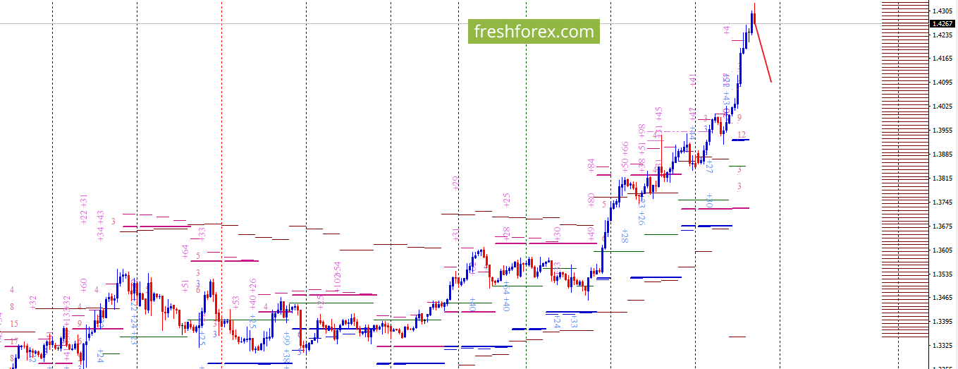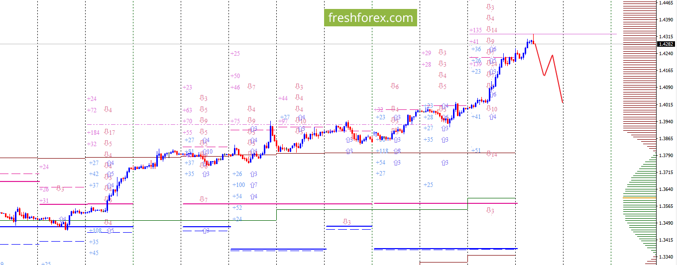 Торговые решения: Sell 1.4270 – 1.4250 take profit 1.4080 – 1.4050.