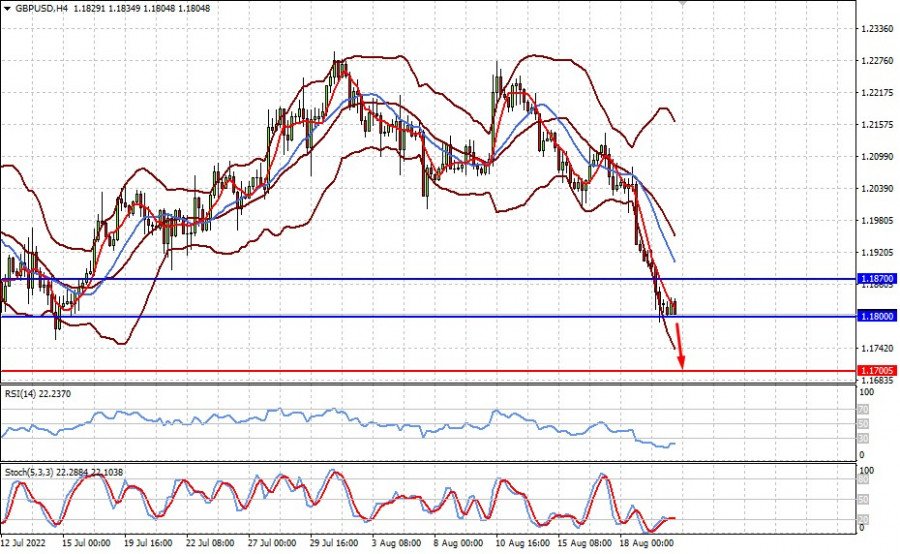 Пара тестирует отметку 1.1800. Падение спроса на рисковые активы в преддверии важного события - выступления Дж. Пауэлла на симпозиуме в Джексон-Хоул - оказывает давление на пару, поддерживая доллар в качестве валюты убежище. Падение пары и закрепление ниже этого уровня может привести к снижению к 1.1700.