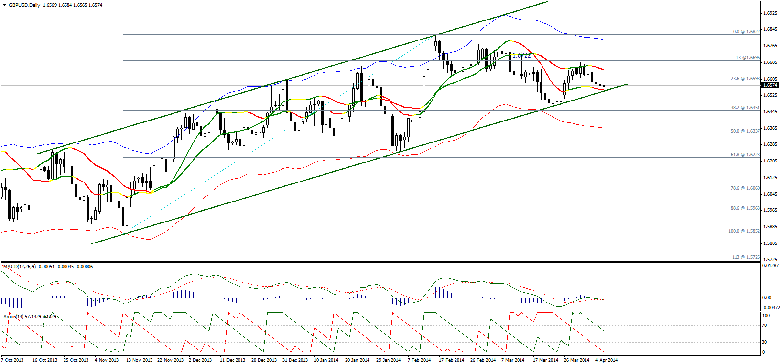 Несмотря на снижение прошлой недели пара по прежнему торгуется вше уровня поддержки восходящего канала. MACD и AROON показывают негативную динамику и при условии прорыва вышеупомянутого уровня поддержки (1,6530), мы будем придерживаться медвежьего сценария на этой неделе.