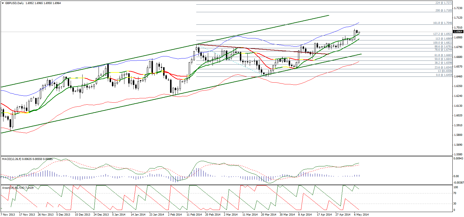Рекомендации: Мы будем покупать пару выше уровня 1,6960 со Стопом 1,6850 и Целью 1,7010, 1,7045 и 1,7185.