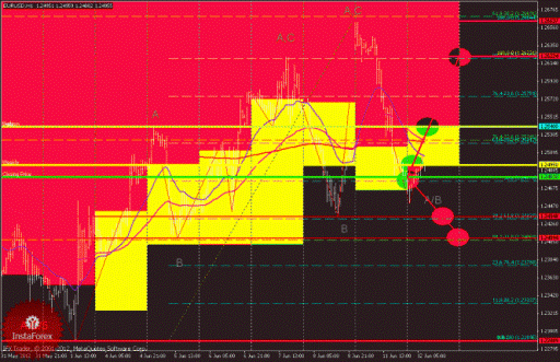 Вчера, 11.06.12, EUR/USD продолжила коррекционное движение и двигалась в рамках флета 1,2664-1,2480. В результате чего была сформирована бычья волна А,С (Н1), в волне А/В (Н4, Daily) вверх, и в настоящее время идет формирование медвежьей волны А/В (Н1). При пробое и закреплении цены ниже значения 1,2481 (Closing Price), ожидаем снижения валютной пары по уровням поддержки, вплоть до защитного пивота 1,2289 (Н4). Скользящие средние 233, 55 и 21 переплелись – флет данного уровня.