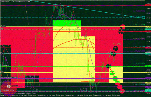 Для похода валюты вверх необходимо закрепление цены выше значения 1,5713 (Closing Price), с формированием бычьей волны А,С/В (Н1).