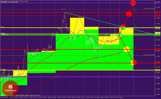 Для похода валюты вниз необходим пробой и закрепление цены ниже значения 1,3222 (Closing Price), с формированием медвежьей волны А,С/В (Н1).